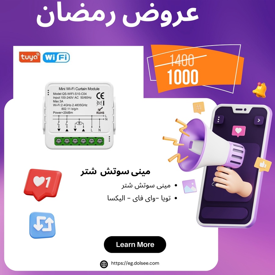 مينى سويتش 1 خط شتر تويا -mini switch 1 gang shutter tuya