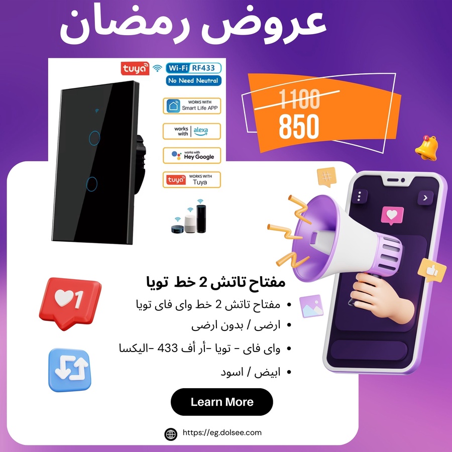 مفتاح تاتش - 2خط - واى فاى - تويا - ارضى - بدون ارضى -ار اف 433